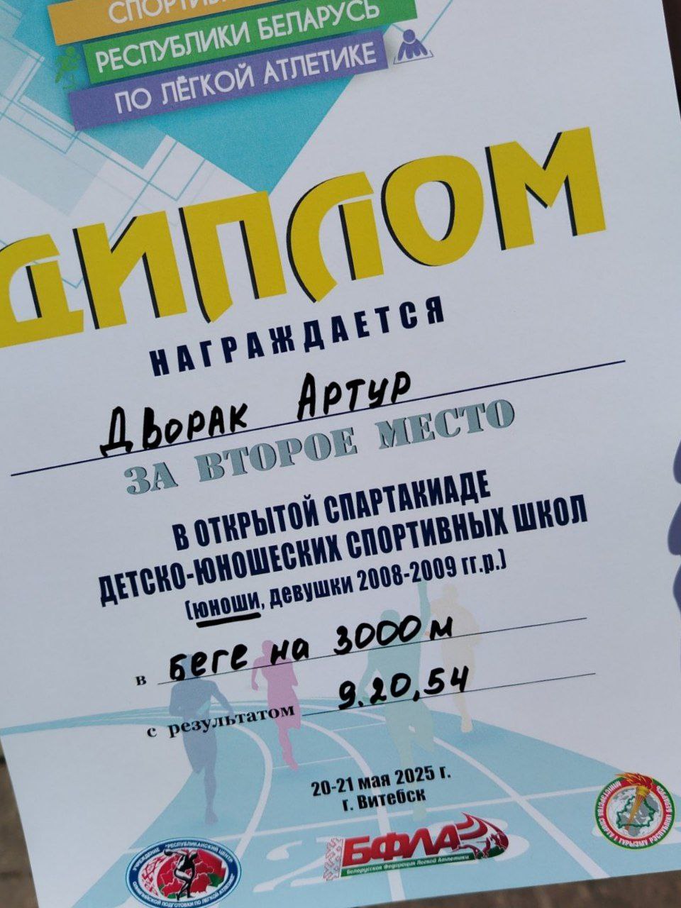 В беге на 3000 метров учащийся Добрынской средней школы Ельского района, воспитанник Ельской районной ДЮСШ (тренер Игорь Захаров) Дворак Артур занял ВТОРОЕ место!